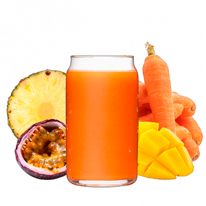 Fruta de la pasión, piña, zanahoria y mango.