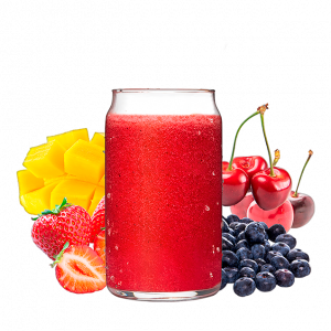 Mango, fresa, arándano y cereza.
